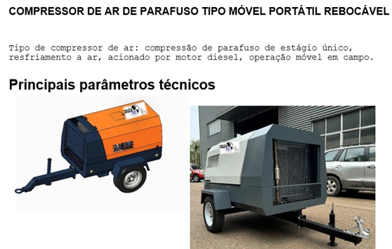 COMPRESSOR DE AR DE PARAFUSO DE ESTÁGIO ÚNICO E DUPLO DIESEL - REBOCÁVEL
