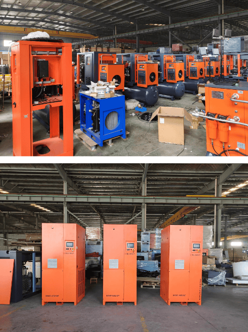 COMPRESSOR DE AR PARAFUSOS COMPRESSOR DE AR PARAFUSOSModel LG11EZT-8 Potência: 11KW/15HPPressão 125PSICapacidade: 1.7m3/min220V, três fases, 60HZIP23 (em inglês)Frequência fixaTank 200 a 300 Litros